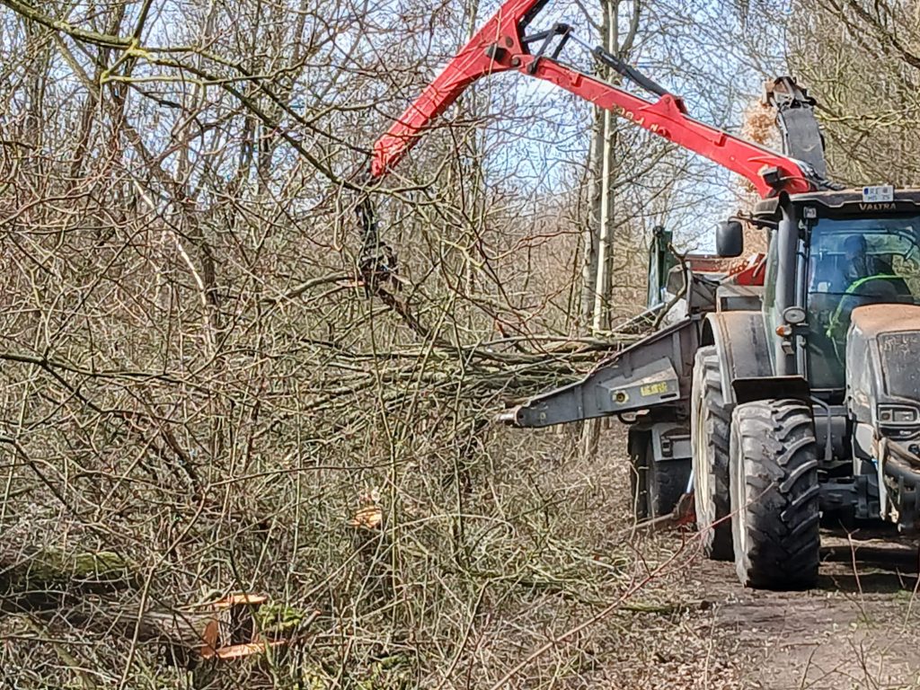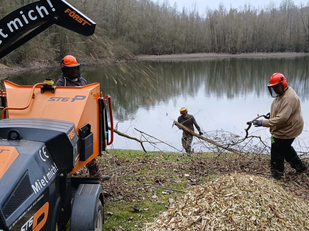 Außerdem war der Holzhacker in Deckbergen im Einsatz. Das restliche Holz vor Ort wird ebenfalls noch gehackt. Aktuell ist der Häcksler jedoch defekt – sobald er wieder läuft, geht es weiter.